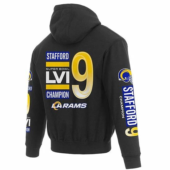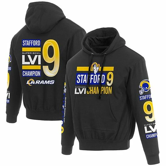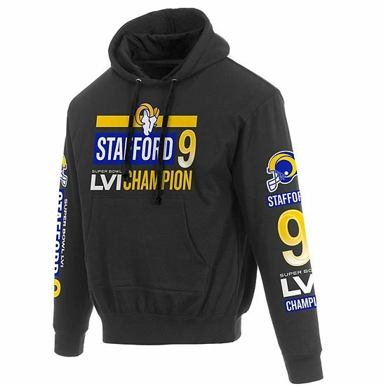 The 2021 NFL season was full of excitement, but the greatest part was seeing your Los Angeles Rams take their rightful place as the best team in the league! Celebrate the Super Bowl LVI Champions by grabbing this Matthew Stafford Player Name & Number Pullover Hoodie from JH Design. With crisp SBLVI graphics, this commemorative gear is just what every Los Angeles Rams fan needs to show their loyalty on game days.