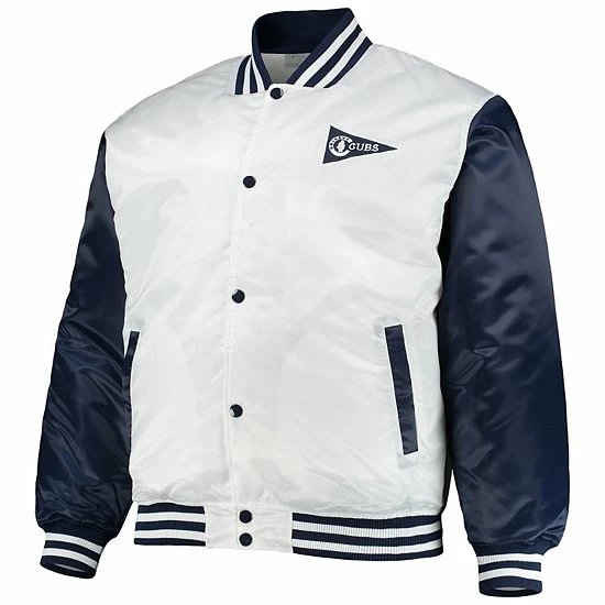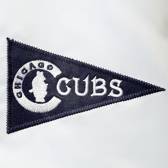 Show off your Chicago Cubs fandom in this Satin full-snap jacket. It features stitched Chicago Cubs graphics highlighted by the woven stripes and contrast-color design. The quilted lining will also help you stay warm and cozy in chilly conditions.