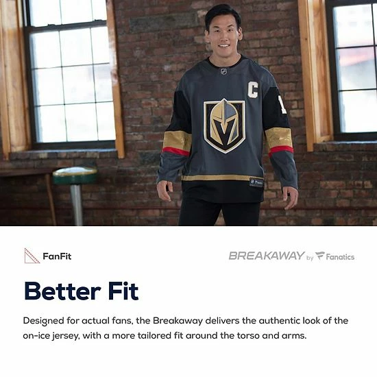 We want fans to celebrate their fandom by customizing and personalizing certain products. For these customizable products, including jerseys, we invite customers to tell us how they would like their preferred name or other text to appear by typing that text into the field indicated. However, just because a customer is able to type proposed customization text into the field and is able to complete the order through the website, not all proposed customization text will be accepted. Please note, Fanatics may reject and cancel any customization order for any reason, including for messages that are deemed offensive or inappropriate. Introducing the Breakaway by Fanatics – the official jersey made just for the fans. From the world’s largest collection of officially licensed gear comes the first jersey inspired and built by fans for fans. We asked NHL devotees what they wanted in a new jersey. We listened and we delivered, creating a jersey with an exclusive set of features designed for the fan.