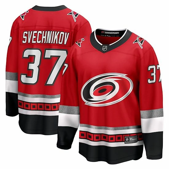 Celebrate 25 years of the Carolina Hurricanes in style with this Fanatics Branded Premier Breakaway Player Jersey. This Carolina Hurricanes jersey features bold team logos and colors and includes 25th Anniversary on the collar, immediately making it a staple to your game day wardrobe. You’ll be ready to watch your team take the ice whenever you sport this jersey.