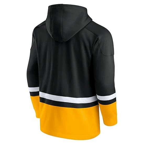 Take to the streets ready to proudly proclaim your Boston Bruins fandom in this First Battle Power Play hoodie. With its contrasting colorway accentuating the bold Boston Bruins graphics, this Fanatics Branded pullover is an eye-catching way to root for your favorites. Finished with a lace-up neck for an added bit of flair, this hoodie will have you more ready than ever for the next puck drop.