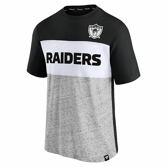 Demonstrate your longstanding Las Vegas Raiders fandom with this Throwback Colorblock T-shirt from Fanatics Branded. It features a bold, two-toned colorway with a large team wordmark and vintage logo on the chest. This tee is sure to be a standout choice in your Las Vegas Raiders gear collection when you want a classic game day look.