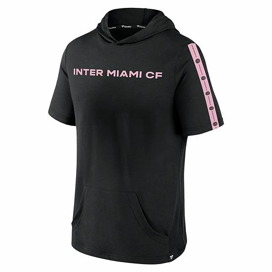 For an original piece of fan gear, grab this Definitive Victory short-sleeved hoodie by Fanatics Branded. It features bold Inter Miami CF graphics that makes it easy to notice who you root for on the pitch. Plus, the front pouch pocket and cozy hood give this Inter Miami CF pullover the look and feel of a traditional hoodie for a standout fan item.