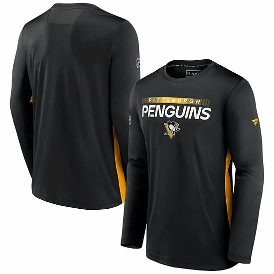 As the Pittsburgh Penguins hit the rink, show off your unwavering pride with this Fanatics Branded Pro Performance T-shirt. The toasty long sleeves and soft fabric bring added warmth and comfort to your day. Plus, the striking Pittsburgh Penguins graphics on the chest add authentic team flair to your collection of cool weather gear.