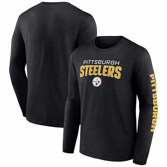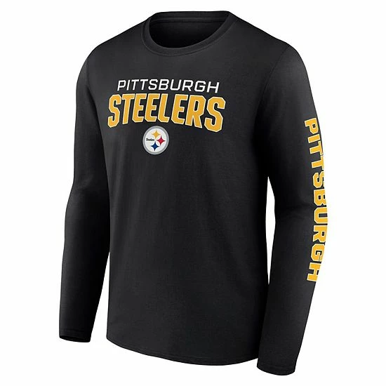 Go the Distance and showcase your Pittsburgh Steelers pride by grabbing this Fanatics Branded T-shirt. It features bold Pittsburgh Steelers wordmark graphics on the chest and down the sleeve that can easily be paired with other chilly-weather fan gear. A classic tee construction and soft fabric pair for the ultimate casual feel.