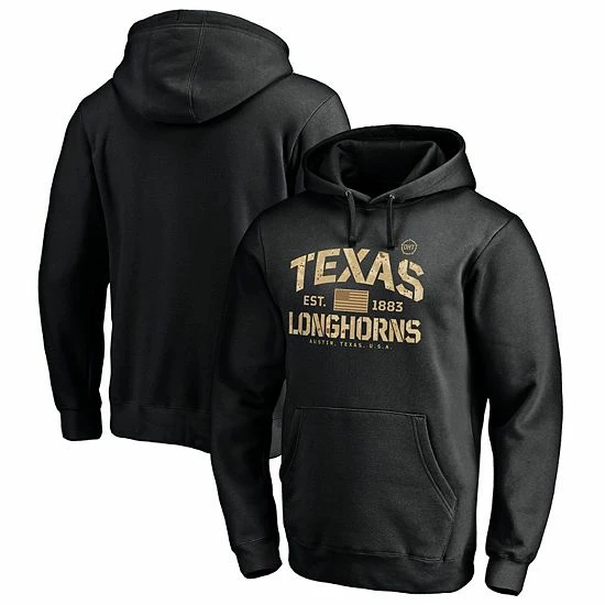Display support for those who defend our country and your beloved Texas Longhorns when you wear this OHT Military Appreciation Boot Camp hoodie from Fanatics Branded. Its printed graphics in neutral colors feature the Texas Longhorns name and school’s founding year around an American flag. You’ll proudly represent your favorite collegiate squad in this midweight pullover.
