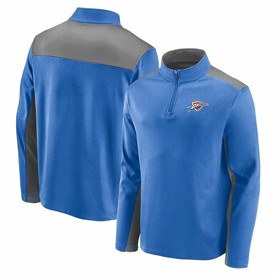 Bundle up in brisk temperatures and cheer for your squad each time you don this Primary Logo fleece quarter-zip jacket. This Fanatics Branded jacket features sleek Oklahoma City Thunder graphics on the left chest that will highlight your devotion to your favorites. Reach for this bold extra layer to show that the temperature has no bearing on your showing of support for the Oklahoma City Thunder.