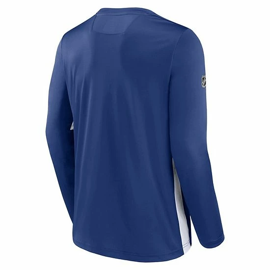 As the Toronto Maple Leafs hit the rink, show off your unwavering pride with this Fanatics Branded Pro Performance T-shirt. The toasty long sleeves and soft fabric bring added warmth and comfort to your day. Plus, the striking Toronto Maple Leafs graphics on the chest add authentic team flair to your collection of cool weather gear.
