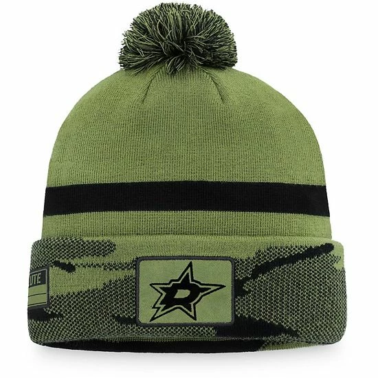 Chilly Dallas Stars game days are no match against your team loyalty when you wear this Military Appreciation cuffed knit hat with pom from Fanatics Branded. It features distinctive team graphics and a stylish, knit camo pattern on the cuff. Designed to stretch for a comfortable fit, this hat is perfect for loyal Dallas Stars fans.