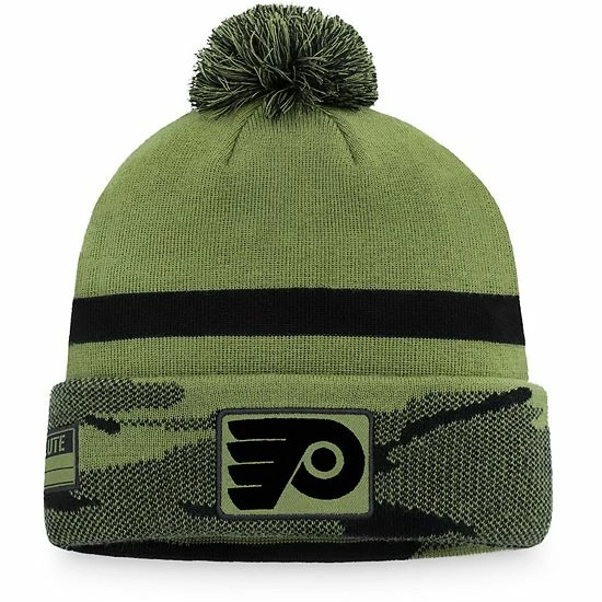 Chilly Philadelphia Flyers game days are no match against your team loyalty when you wear this Military Appreciation cuffed knit hat with pom from Fanatics Branded. It features distinctive team graphics and a stylish, knit camo pattern on the cuff. Designed to stretch for a comfortable fit, this hat is perfect for loyal Philadelphia Flyers fans.