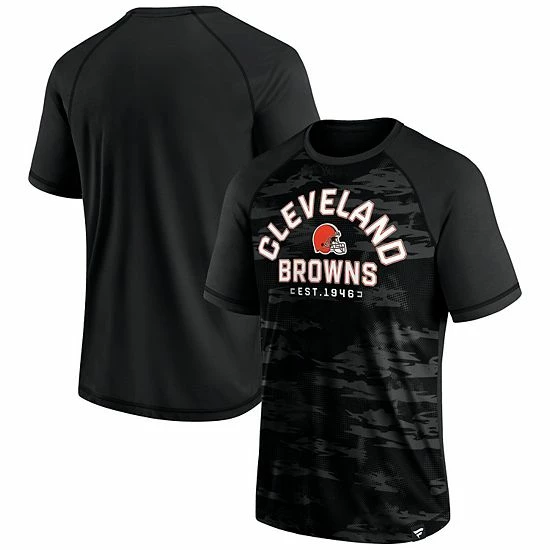Elevate your game day look with this Cleveland Browns Blackout Hail Mary T-shirt from Fanatics Branded. It features a sleek camo pattern and bold team graphics across the front, making it clear where your loyalty lies. In addition to the vivid simplicity of this design, raglan sleeves create extra arm room for better movement in this Cleveland Browns tee.