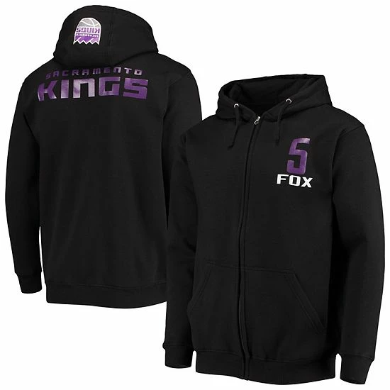 Add some Sacramento Kings loyalty to any cold day look with this De’Aaron Fox Name and Number full-zip hoodie jacket. With its warm lining and stylish design, this Fanatics Branded hoodie will leave no doubt about team spirit. Combined with crisp Sacramento Kings and De’Aaron Fox graphics, this hoodie is a must-have for any fan.