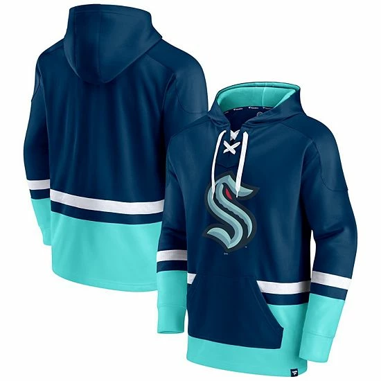 Take to the streets ready to proudly proclaim your Seattle Kraken fandom in this First Battle Power Play hoodie. With its contrasting colorway accentuating the bold Seattle Kraken graphics, this Fanatics Branded pullover is an eye-catching way to root for your favorites. Finished with a lace-up neck for an added bit of flair, this hoodie will have you more ready than ever for the next puck drop.