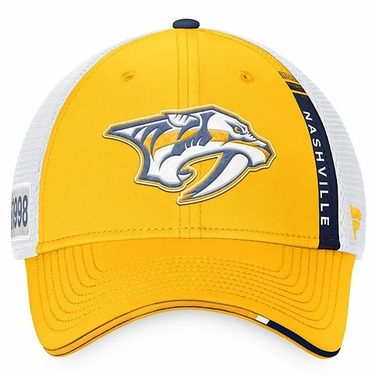 Get excited for the upcoming season as the Nashville Predators add fresh, new talent to their lineup by grabbing this 2022 NHL Draft Authentic Pro On Stage Trucker Adjustable Hat. Its high crown adds style while its mesh panels add ventilation, keeping you comfortable all day long. This Fanatics Branded gear sports the same design and Nashville Predators graphics that the players will be wearing during the draft, ensuring that you always look and feel like the real deal.