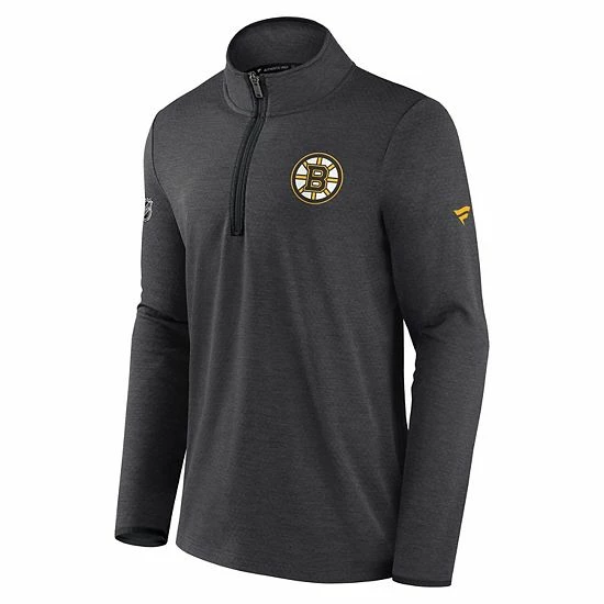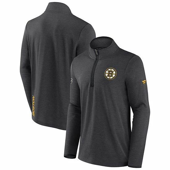 Make the next Boston Bruins game day the coziest one ever with this Authentic Pro Rink quarter-zip jacket from Fanatics Branded. It features the team’s logo on the chest and their name spelled out vertically on the back, meaning everyone around you will know all about your unwavering fandom. The fleece lining and mock neck provide additional coverage and warmth that you’ll desire when getting ready to cheer on the Boston Bruins.