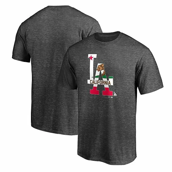 Pay a nod to your favorites with this distinct Los Angeles Dodgers Hometown Collection California Flag T-shirt from Fanatics Branded. It features a classic fit and feel and the Los Angeles Dodgers logo filled in with their state flag, giving you an undeniably spirited look. Each time you sport this bold tee, there will be no question you want to see your team win big.