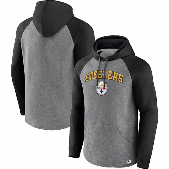 Draw eyes to your Pittsburgh Steelers loyalty when you sport this Fanatics Branded By Design pullover hoodie. Its contrasting raglan sleeves create more flexible arm movement, highlighting the smooth Pittsburgh Steelers graphics stitched on heathered fabric. Plus, the adjustable hood and front pouch pocket provide extra warmth.