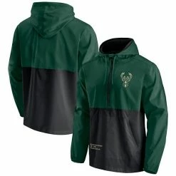 Defend against rainy weather in this Milwaukee Bucks Anorak Block Party Windbreaker hoodie jacket from Fanatics Branded. Its two-tone design features printed Milwaukee Bucks graphics and a half-zip closure for maintaining the perfect temperature. An adjustable hood with mesh lining also helps block the elements without bringing too much heat.