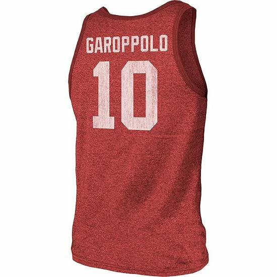 Jimmy Garoppolo is your favorite player, and for good reason. Show him your support by grabbing this San Francisco 49ers Name & Number Tri-Blend Tank Top from Fanatics Branded. It features bold San Francisco 49ers and Jimmy Garoppolo graphics, so no one will be able to question where your allegiance lies every time you rock this sweet gear.