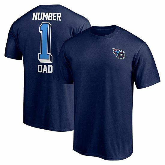 Make your father feel like a special Tennessee Titans fan with this #1 Dad T-shirt from Fanatics Branded. It features the Tennessee Titans logo printed on the front and a jersey-like design celebrating him on the back. The classic crew neck and lightweight material will provide a comfortable feel, as well.