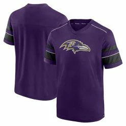 Wear your favorite team’s colors proudly with this Baltimore Ravens Textured Hashmark T-shirt from Fanatics Branded. It features a large Baltimore Ravens logo highlighted by the coordinating sleeve stripes. The mesh detailing also adds a jersey-like look to this V-neck tee.