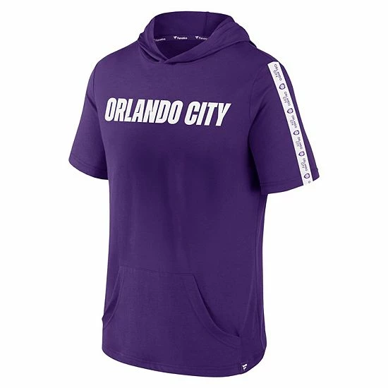 For an original piece of fan gear, grab this Definitive Victory short-sleeved hoodie by Fanatics Branded. It features bold Orlando City SC graphics that makes it easy to notice who you root for on the pitch. Plus, the front pouch pocket and cozy hood give this Orlando City SC pullover the look and feel of a traditional hoodie for a standout fan item.