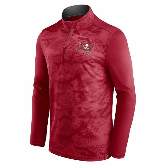 Keep warm in a cool way by wearing this Tampa Bay Buccaneers Jacquard jacket from Fanatics Branded. It features understated Tampa Bay Buccaneers graphics and a matching camo design. The contrasting color on the interior collar also adds an extra bit of team flair to this quarter-zip jacket.