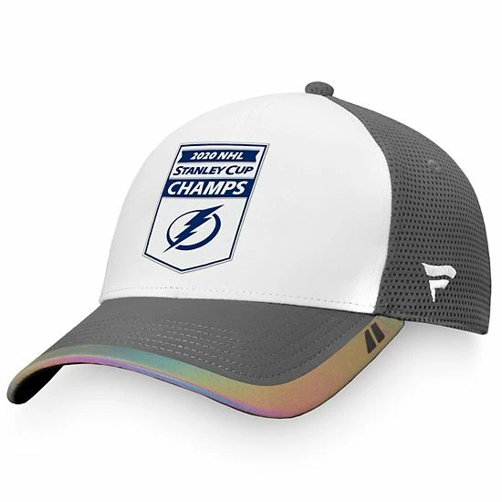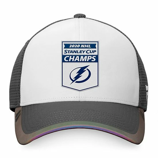 Celebrate your Tampa Bay Lightning finishing above all the other teams with this 2020 NHL Stanley Cup Champs Banner hat from Fanatics Branded. It features a commemorative applique with the Tampa Bay Lightning logo on the front and metal 2020 Stanley Cup Champions graphics on the back. The mesh overlay will also help give this snapback cap a breezy feel.