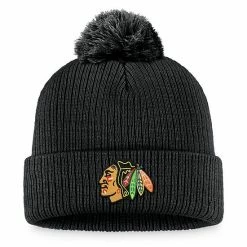 Men’s Fanatics Branded Black Chicago Blackhawks Core Primary Logo Cuffed Knit Hat With Pom