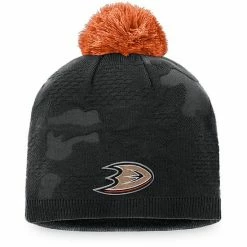 Women’s Fanatics Branded Black/Orange Anaheim Ducks Authentic Pro Team Locker Room Beanie With Pom