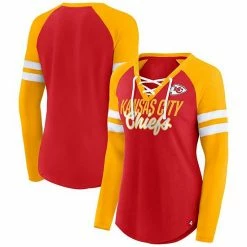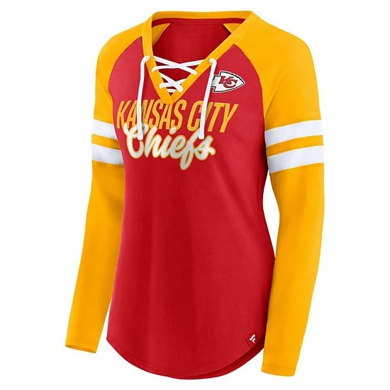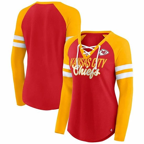 Wear your favorite team’s colors loud and proud with this Kansas City Chiefs True to Form T-shirt from Fanatics Branded. It features a sporty lace-up V-neckline and Kansas City Chiefs graphics accentuated by the contrasting stripes. Plus, raglan sleeves provide a little extra arm room for better movement.