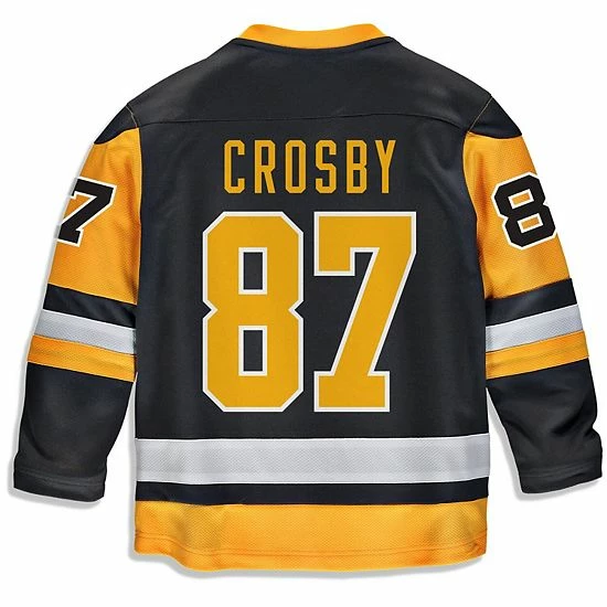 Nothing is more exciting to your young fan than watching the Pittsburgh Penguins light the lamp, and he can relive those unforgettable moments every time he puts on this Sidney Crosby Replica Player Jersey from Fanatics Branded.