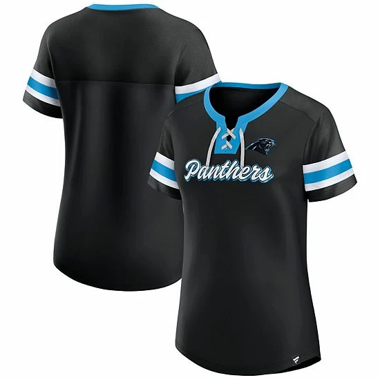 Elevate your style on game day by sporting this Carolina Panthers Original State T-shirt from Fanatics Branded. It features a chic lace-up neckline and sleeve stripes that coordinate with the team’s name across the front. Mesh fabric also gives this Carolina Panthers tee a breathable feel for more comfortable wearing during warmer weather.