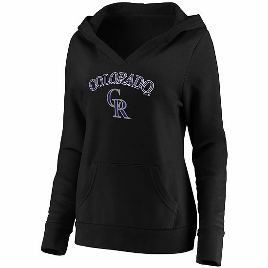 Come out swinging against cooler weather in this Core Team Lockup V-neck hoodie from Fanatics Branded. It features the Colorado Rockies logo printed below the ball club’s name on the front. The hood and front pouch pocket will also help you stay warm when you wear this Colorado Rockies pullover.