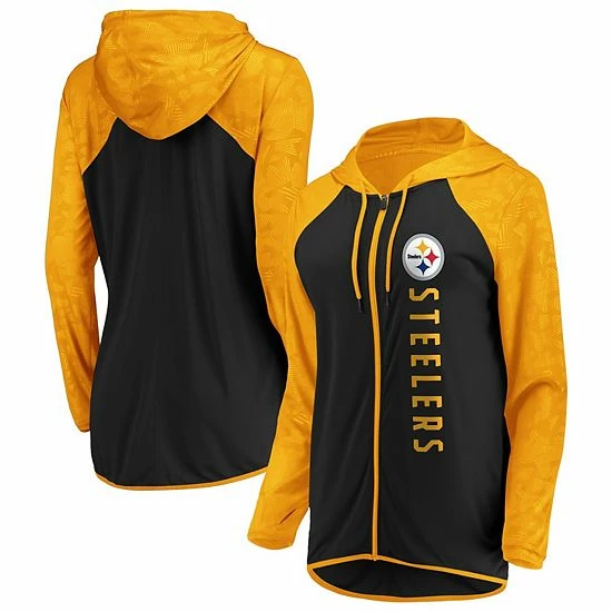Don’t hold back on showing that the Pittsburgh Steelers are your favorite team with this Forever Fan full-zip hoodie from Fanatics Branded. Its two-tone design features Pittsburgh Steelers graphics printed down the left side and a geometric pattern on the sleeves, shoulders and hood. Plus, a longer hem in the back provides some extra coverage for a more relaxed fit.