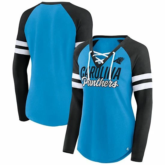 Wear your favorite team’s colors loud and proud with this Carolina Panthers True to Form T-shirt from Fanatics Branded. It features a sporty lace-up V-neckline and Carolina Panthers graphics accentuated by the contrasting stripes. Plus, raglan sleeves provide a little extra arm room for better movement.