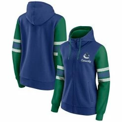 Keep cold days at bay with this Vancouver Canucks Script Fleece full-zip hoodie. This Fanatics Branded sweatshirt features eye-catching sleeve stripes and bold team graphics. Gear up in any weather with this stylish Vancouver Canucks jacket.