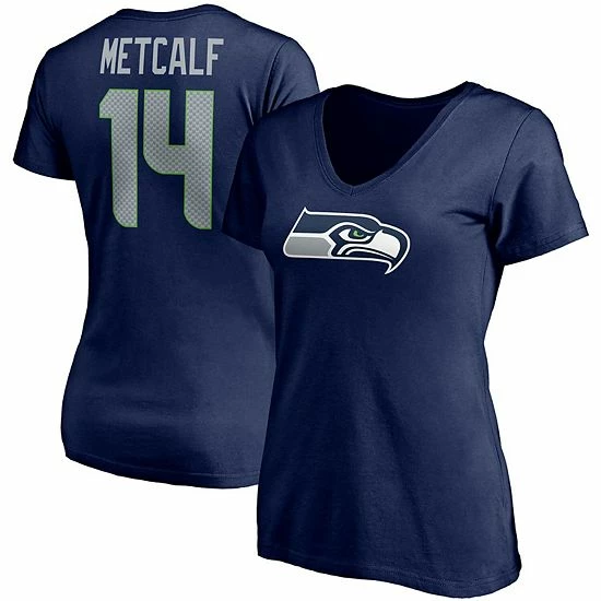 Let your tee show everybody which Seattle Seahawks player you most look forward to seeing on the field with this DK Metcalf Player Icon Name and Number T-shirt from Fanatics Branded. It features the Seattle Seahawks logo printed across the front and DK Metcalf graphics with faux mesh numbers on the back. The cotton fabric will also give this V-neck shirt a lightweight, comfortable feel.