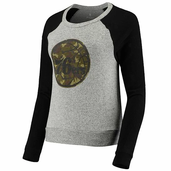 Complement next level Philadelphia 76ers spirit with this comfy Prestige Camo raglan crew neck sweatshirt exclusively from Fanatics Branded. This on-trend Philadelphia 76ers sweatshirt features signature team graphics, ideal for a chilly day out or cozying up for a highlight reel.