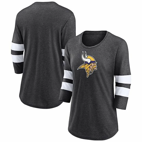 Enjoy a laid-back look that’s big on Minnesota Vikings pride anytime you sport this Primary Logo 3/4 sleeve T-shirt from Fanatics Branded. It features a bold Minnesota Vikings graphic just below the scoop neck, giving you subtle twist that’s great for any casual ensemble. Plus, the rounded hem helps the tee rest comfortably at the waist.