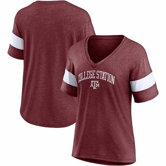 Represent the hometown of your Texas A&M Aggies in this Arched City V-neck T-shirt from Fanatics Branded. It features Texas A&M Aggies graphics printed in a distressed design that’s highlighted by the contrasting sleeve stripes. Tri-blend material also feels super soft, and the rounded hem creates a more comfortable fit.