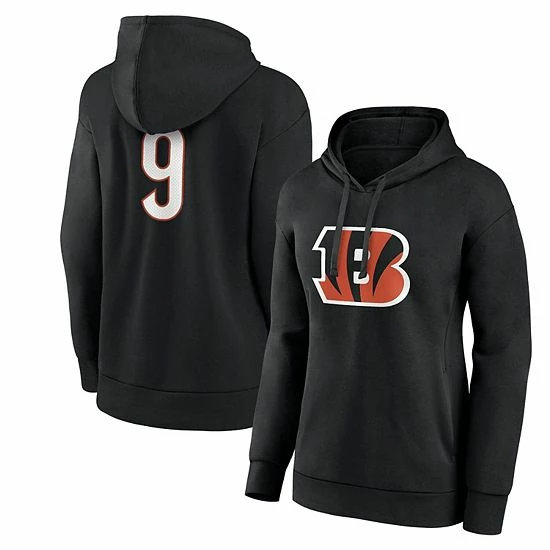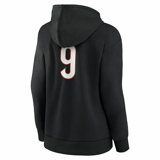 Call attention to your favorite Cincinnati Bengals player with this Joe Burrow Player Icon Name and Number V-neck pullover hoodie from Fanatics Branded. It features the Cincinnati Bengals logo printed on the front and Joe Burrow graphics on the back. An adjustable hood and pouch pocket also help keep you warm and comfy.