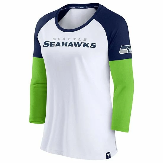 Let everyone know you’re a tried and true Seattle Seahawks fan by wearing this Fanatics Branded Durable T-shirt. It offers a scoop neck and striking Seattle Seahawks graphics to elevate your game day look. Plus, the roomy raglan sleeves provide ease of movement while the soft fabric keeps you comfy all day long.