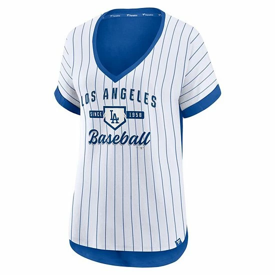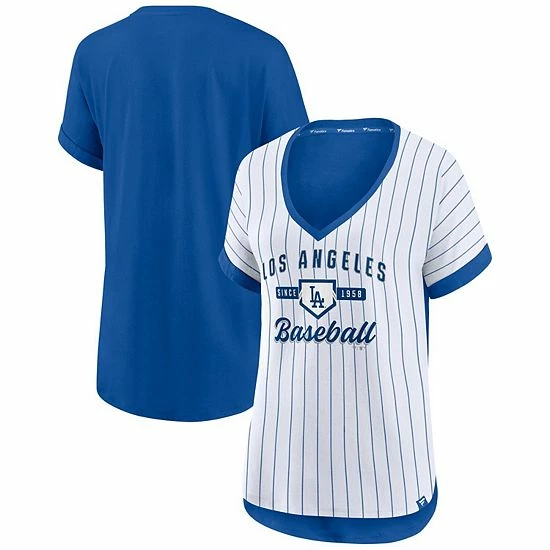 Create a fun, team-inspired look for the ballpark with this Los Angeles Dodgers Iconic Noise Factor Pinstripe V-neck T-shirt from Fanatics Branded. It features a two-tone design with pinstripes down the front that accentuate the Los Angeles Dodgers graphics on the chest. This game day tee also features a rounded hem with a droptail for proper coverage as you rep your crew.