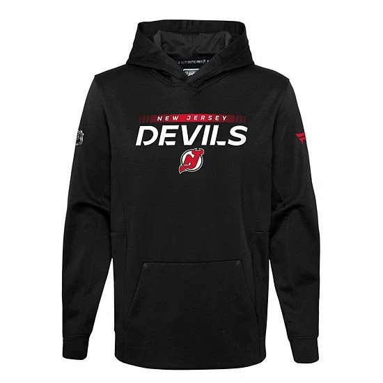 If your sidekick needs some new gear for the season, this New Jersey Devils Authentic Pro pullover hoodie by Fanatics Branded has them covered. It features a team wordmark and logo on the front so nobody doubts that New Jersey Devils colors run deep. When the temperature drops, this warm hoodie keeps your young fan warm and cozy.