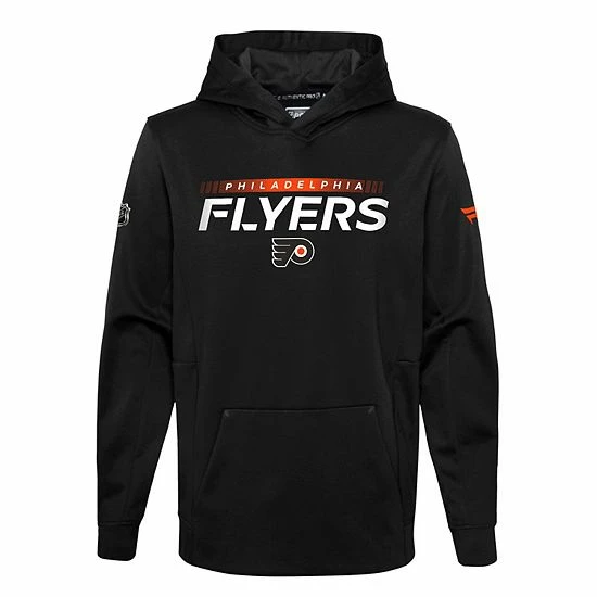 If your sidekick needs some new gear for the season, this Philadelphia Flyers Authentic Pro pullover hoodie by Fanatics Branded has them covered. It features a team wordmark and logo on the front so nobody doubts that Philadelphia Flyers colors run deep. When the temperature drops, this warm hoodie keeps your young fan warm and cozy.