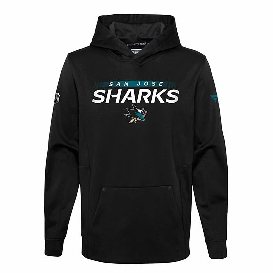 If your sidekick needs some new gear for the season, this San Jose Sharks Authentic Pro pullover hoodie by Fanatics Branded has them covered. It features a team wordmark and logo on the front so nobody doubts that San Jose Sharks colors run deep. When the temperature drops, this warm hoodie keeps your young fan warm and cozy.