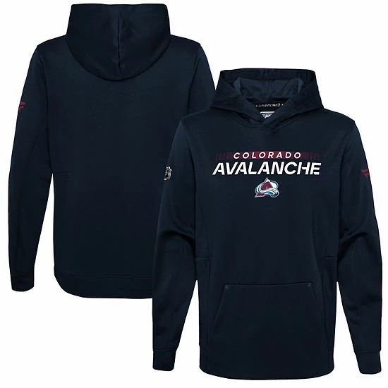 If your sidekick needs some new gear for the season, this Colorado Avalanche Authentic Pro pullover hoodie by Fanatics Branded has them covered. It features a team wordmark and logo on the front so nobody doubts that Colorado Avalanche colors run deep. When the temperature drops, this warm hoodie keeps your young fan warm and cozy.